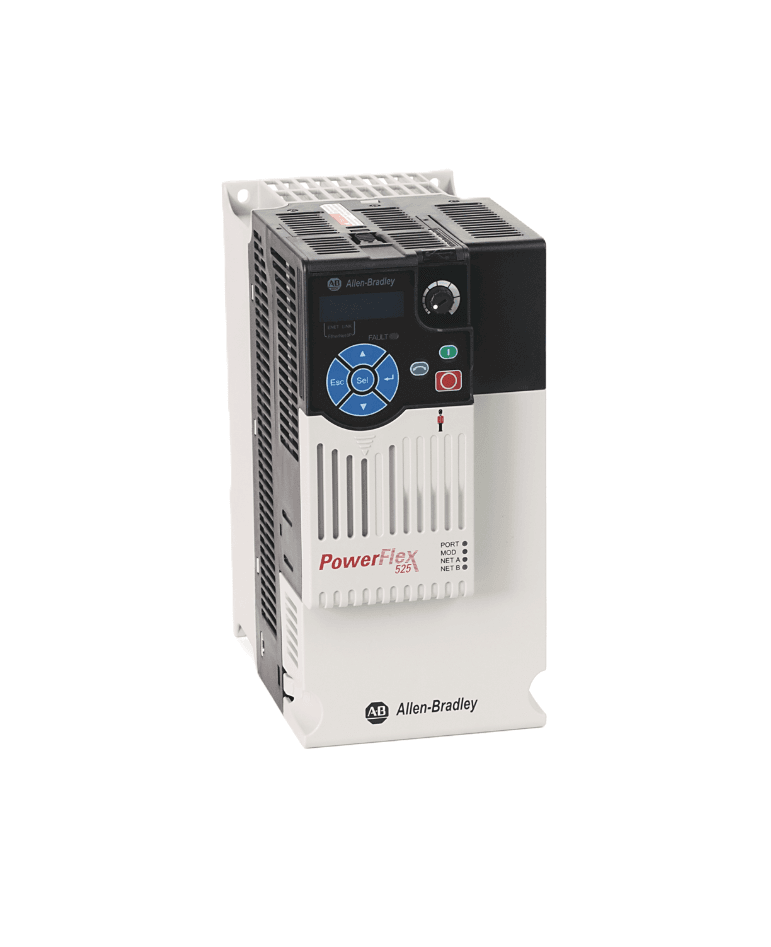 PF 525, 480V, 3PH, 7.5HP, IP20, 5.5KW PowerFlex 525 AC Drive, with Embedded EtherNet/IP and Safety, 480 VAC, 3 Phase, 7.5 HP, 5.5 kW Normal Duty; 7.5 HP, 5.5 kW Heavy Duty, Frame C, IP20 NEMA / Open Type, No Filter.