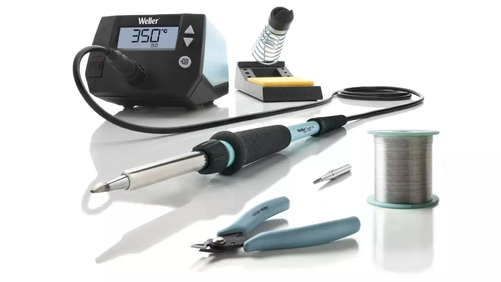 Weller WE 1010 T0053298390 Soldering Station Kit 230V Introducing the WE1010, Weller soldering station. A comprehensive kit that includes many professional soldering accessories in one box. It consists of: • WE1 station, • WEP70 soldering iron fitted with an ETA 1.6mm screwdriver style soldering tip • PH70 safety soldering iron rest with a soldering tip cleaning sponge • Shear cutter Introducing the WE1010, Weller soldering station. A comprehensive kit that includes many professional soldering accessories in one box. It consists of: