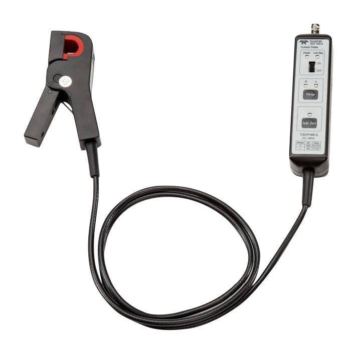Teledyne LeCroy T3CP100-2 Oscilloscope Probe, Current Type, 2MHz, 100:1dB, BNC Connector, The Teledyne Test Tools new current probe is a DC to 2 MHz bandwidth active AC/DC coupled probe, featuring 2 ranges of 100 A Peak, 70 A rms / 10 A Peak, 7 A rms, fast and accurate waveform capture, rise time of ≤ 175 ns and low test circuit loading. This probe can be used with any oscilloscope having a 1 MΩ BNC input.